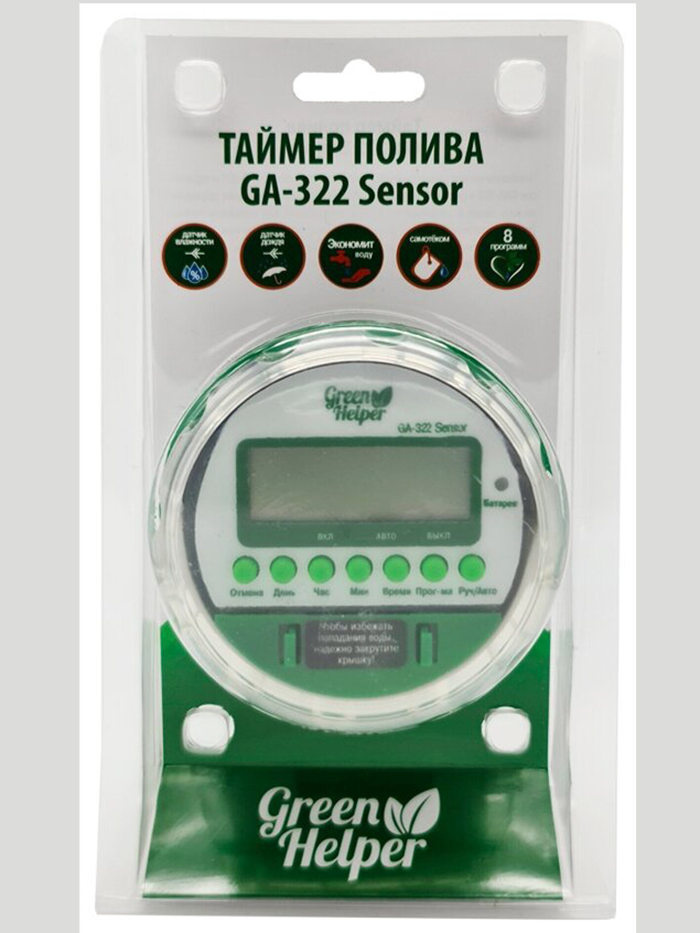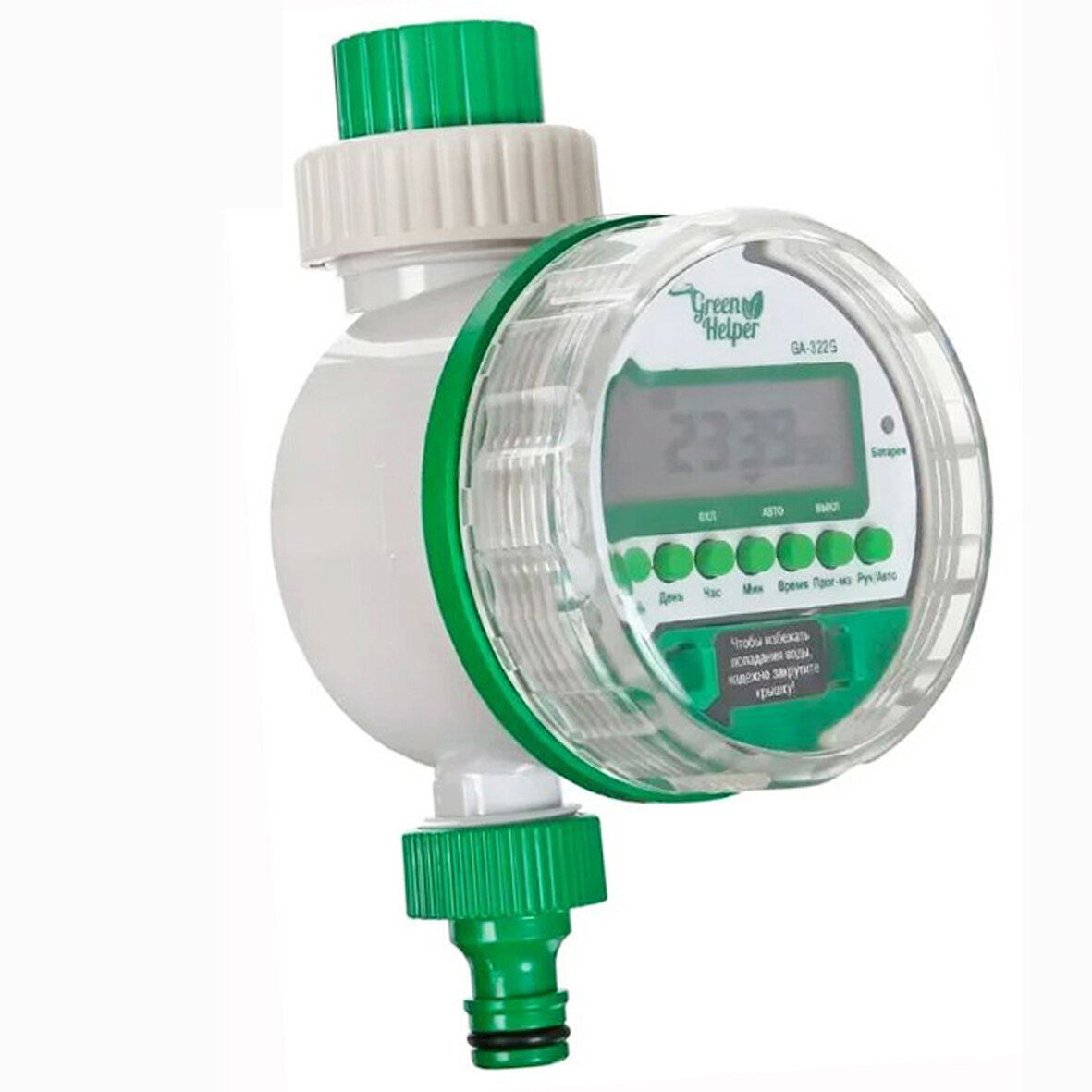 Таймер шаровый, Может использоваться для полива из ёмкости. Может быть запрограммирован на 8 программ. В каждая из этих программ устанавливается время начала и конца полива, а также дни недели, в которые полив будет происходить (15 различных вариантов). Есть дополнительная возможность подключения датчика дождя или датчика влажности.